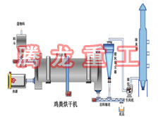 是將待干燥的濕物料由皮帶輸送機或斗式提升機送到料斗,然后經料斗的加料機通過加料管道進入加料端。加料管道的斜度要大于物料的自然傾角,以便物料順利流入干燥器內。干燥器圓筒是一個與水平線略成傾斜的旋轉圓筒。物料從較高一端加入,載熱體由低端進入,與物料成逆流接觸,也有載熱體和物料一起并流進入筒體的。隨著圓筒的轉動物料受重力作用運行到較底的一端。濕物料在筒體內向前移動過程中,直接或間接了載熱體的給熱,使濕物料得以干燥,然后在出料端經皮帶機或螺旋輸送機送出。在筒體內壁上裝有抄板,它的作用是把物料抄起來又撒下,使物料與氣流的接觸表面增大,以提高干燥速率并促進物料前進。載熱體一般分為熱空氣、煙道氣等。載熱體經干燥器以后,一般需要旋風除塵器將氣體內所帶物料捕集下來。如需進一步減少尾氣含塵量,還應經過袋式除塵器或濕法除塵器后再排放。
